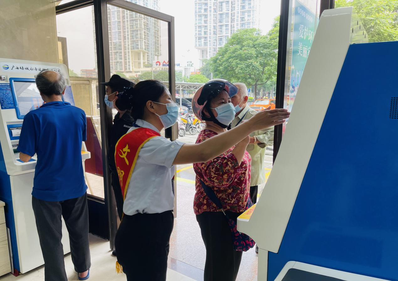 圖為營(yíng)業(yè)處員工在為群眾解疑答惑