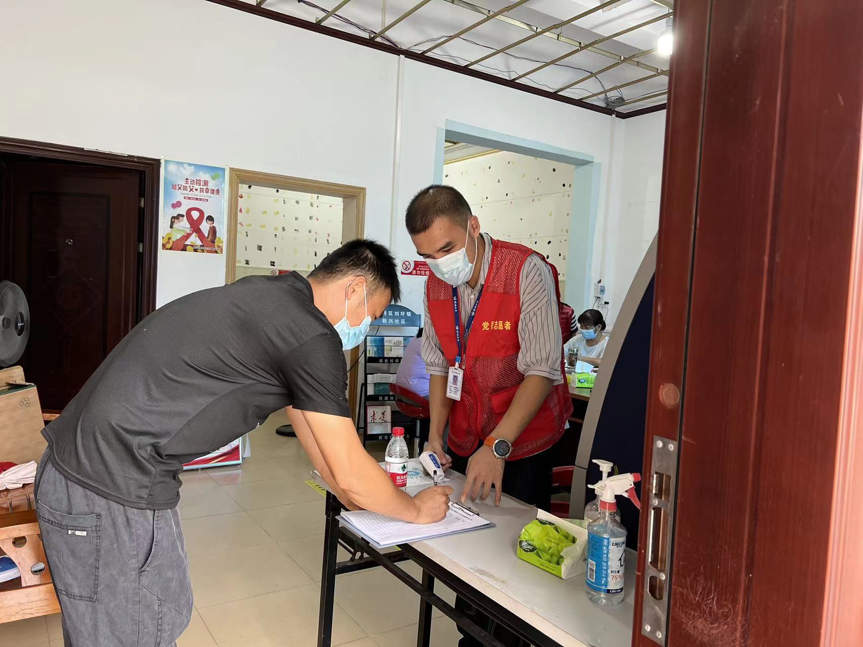 圖為機(jī)關(guān)第三黨支部黨員協(xié)助社區(qū)做好核酸檢測(cè)登記工作