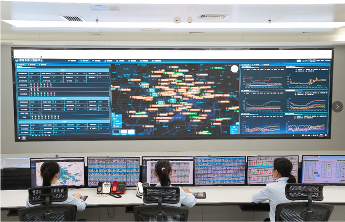 (工作人員通過(guò)智慧水務(wù)大數(shù)據(jù)平臺(tái)進(jìn)行調(diào)度 )