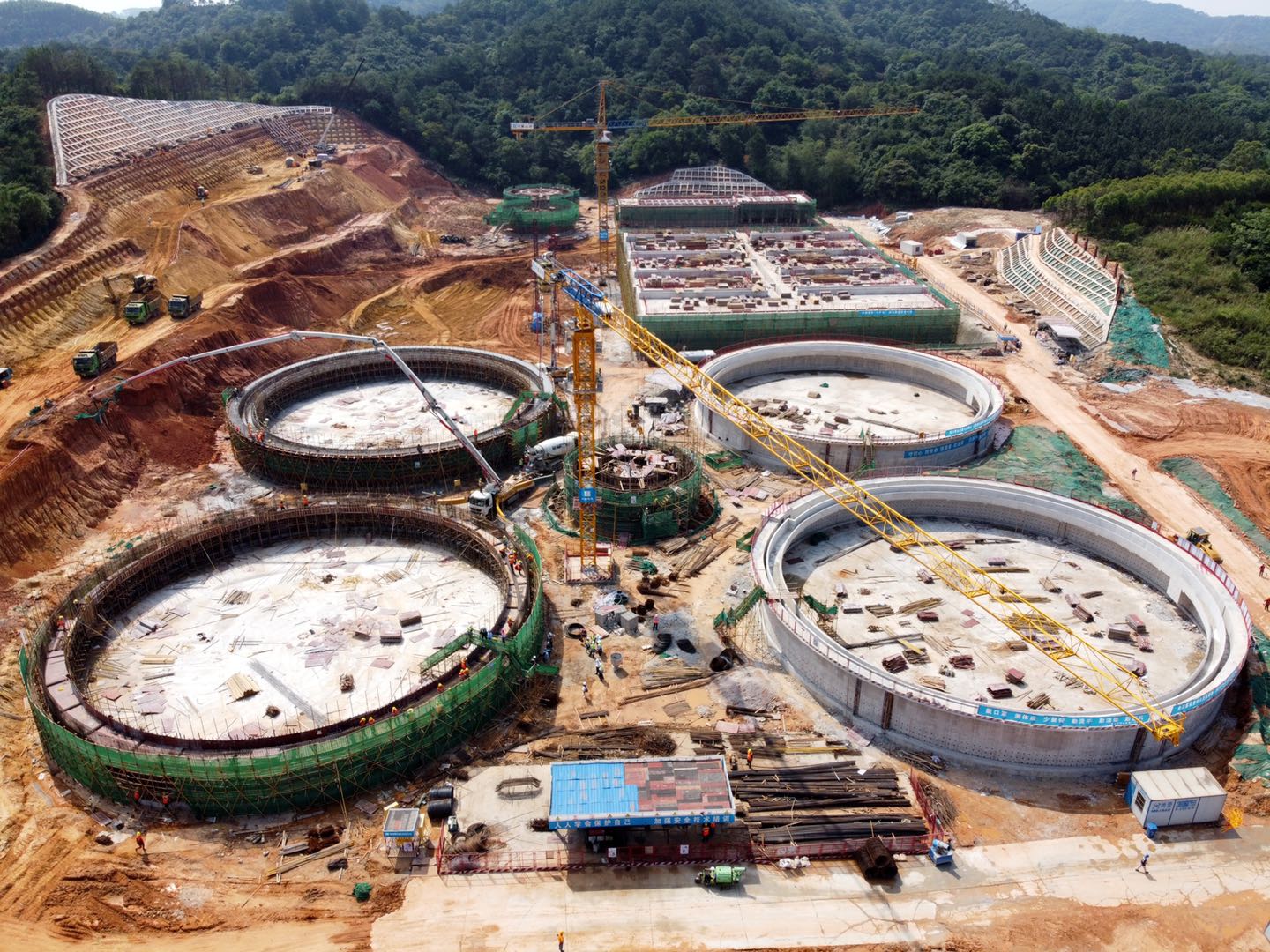 圖為茅橋水質(zhì)凈化廠五一假期期間建設攻堅現(xiàn)場(黃浩供圖)