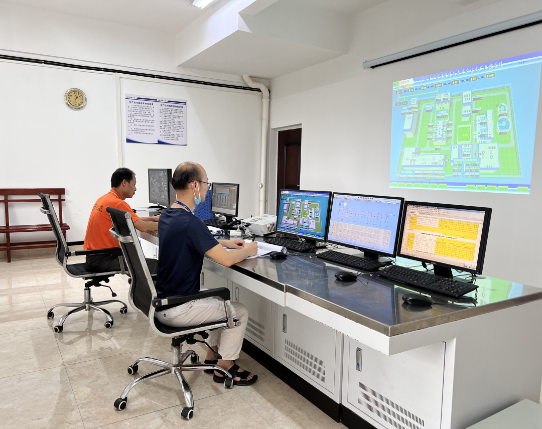 ▲東盟經(jīng)濟(jì)園分公司中心控制室遠(yuǎn)程監(jiān)測(cè)水壓 駱柳新攝