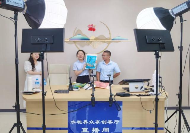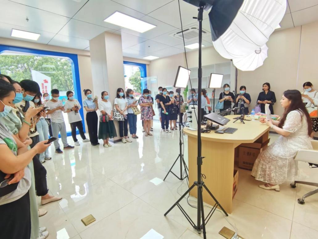 在理論授課結(jié)束后,錄音室和直播間體驗(yàn)開(kāi)始。在水視界啟明創(chuàng)客廳,姚老師向?qū)W員們展示了如何進(jìn)行扶貧農(nóng)產(chǎn)品帶貨直播。隨后,在老師的鼓勵(lì)下,陸續(xù)有學(xué)員嘗試做帶貨主播,作為主播的學(xué)員通過(guò)運(yùn)用所學(xué)的直播技巧以及經(jīng)過(guò)老師的指點(diǎn),直播漸入佳境。其他學(xué)員同步在直播間內(nèi)觀看直播效果,積極在評(píng)論區(qū)和主播互動(dòng)并為主播點(diǎn)贊。