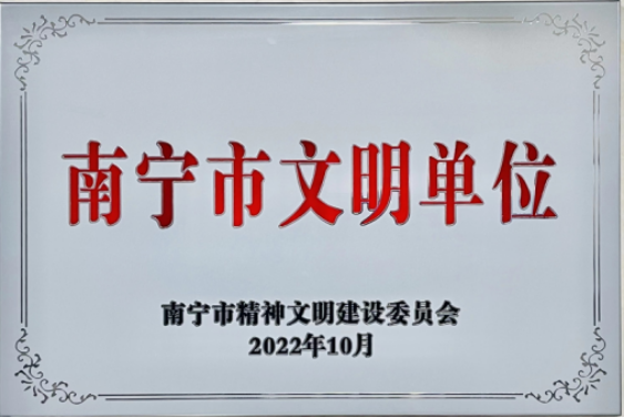 圖為南寧市精神文明建設(shè)委員會(huì)為公司頒發(fā)的南寧市文明單位牌匾