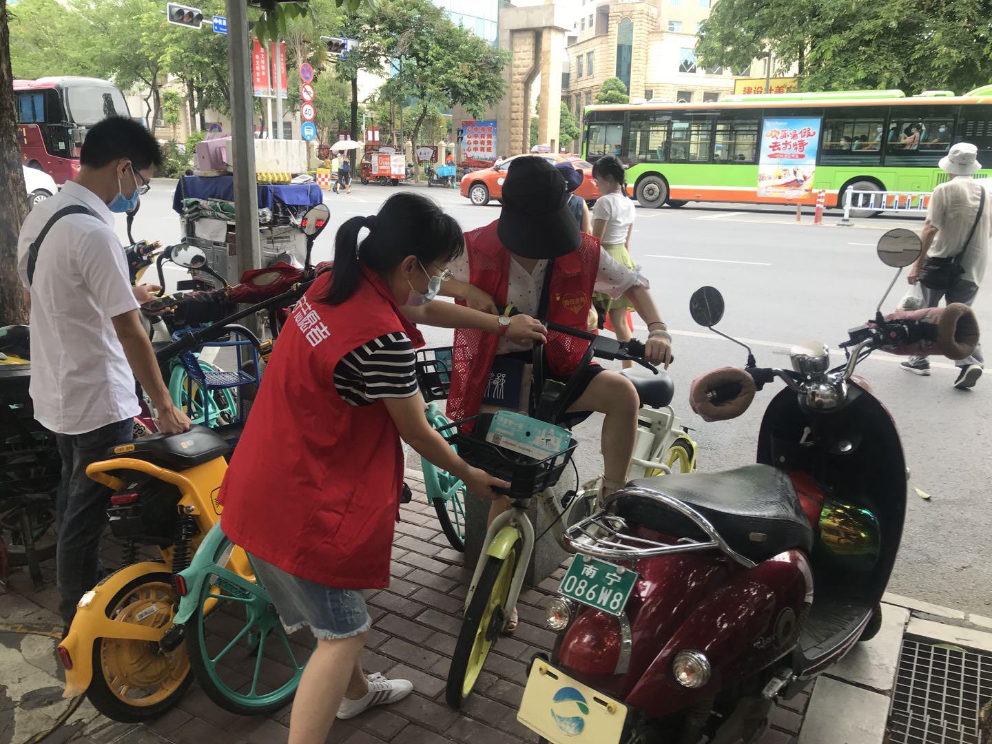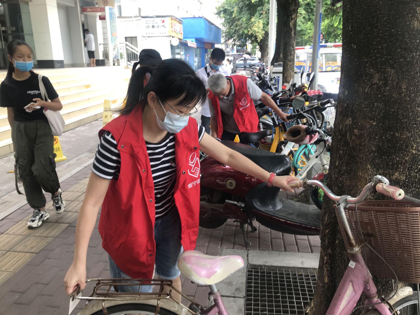 共享單車為居民提供了便利,唱響了綠色出行的理念,然而亂停亂放、隨意毀壞等現(xiàn)象接踵而來,成了靚麗風景線上一抹不文明的色彩。青秀區(qū)津頭路口周邊都是老舊小區(qū),道路狹窄,交通擁擠,共享單車隨便擺放的問題比較嚴重。凌鐵水廠的志愿者們充分發(fā)揚了不怕臟、不怕累、不怕苦的工作作風,在青秀區(qū)街頭開展“”共享單車隨手扶志愿活動”,對主干道出現(xiàn)共享單車扎堆、占道、歪倒的情況,他們會將車扶好,排放整齊,而對于一些零散停放的車,他們便集中搬到一個地方排好。