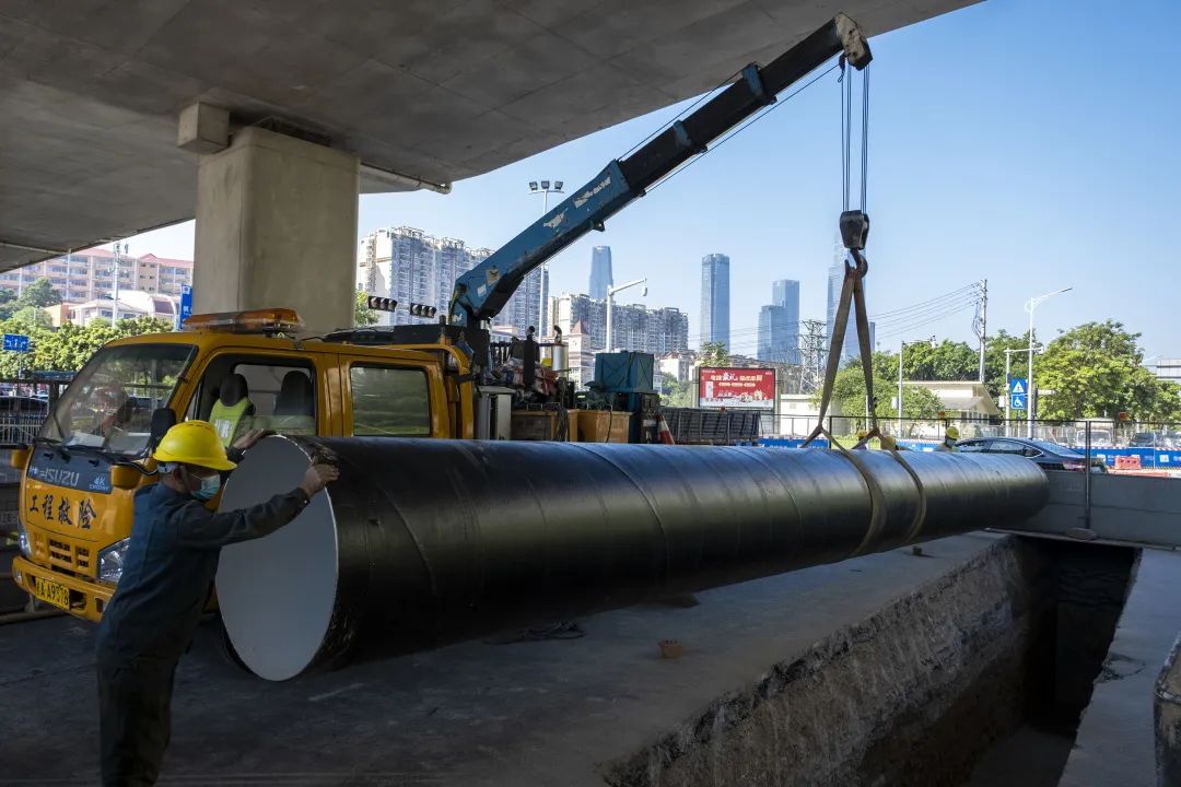 自來(lái)水通過(guò)供水管道輸送至千家萬(wàn)戶(hù),是城市供水命脈。“壯族三月三”和清明節(jié)小長(zhǎng)假期間,作為南寧市主要供水企業(yè),廣西綠城水務(wù)股份有限公司(以下簡(jiǎn)稱(chēng)“綠城水務(wù)”)緊緊圍繞強(qiáng)首府“1+3”工作思路及“五強(qiáng)”重點(diǎn)工作部署,充分利用假期道路車(chē)流人流相對(duì)較少的有利時(shí)期,鉚足干勁加快供水管道建設(shè)。在市區(qū)東部和五象新區(qū),云景路DN1000球墨鑄鐵供水管道以及五象供水加壓站擴(kuò)建DN1000出水管正如火如荼地加快敷設(shè),預(yù)計(jì)在今年供水高峰期來(lái)臨前完工。屆時(shí),南寧市將新增兩個(gè)總長(zhǎng)約7500米的供水“大動(dòng)脈”,城區(qū)供水安全性更有保障。