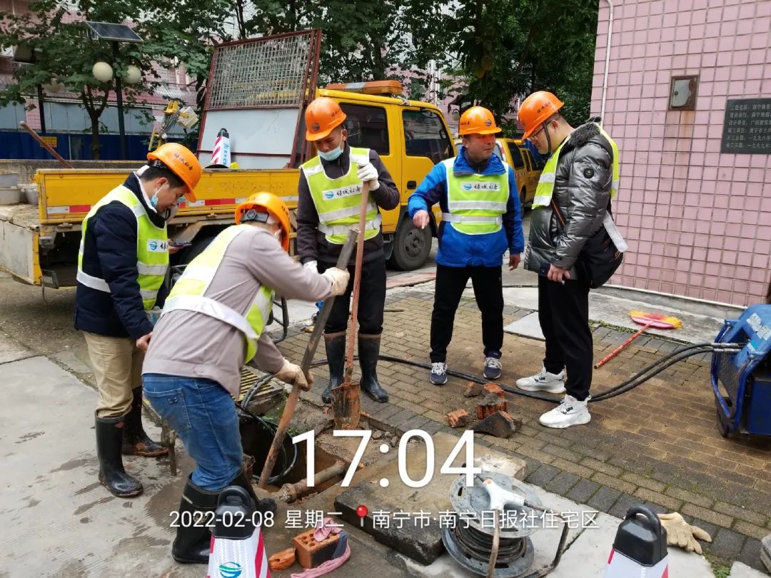 管網(wǎng)管理處“水超人”黨員先鋒隊(duì)義務(wù)為匯春路南寧日?qǐng)?bào)宿舍表后管修漏