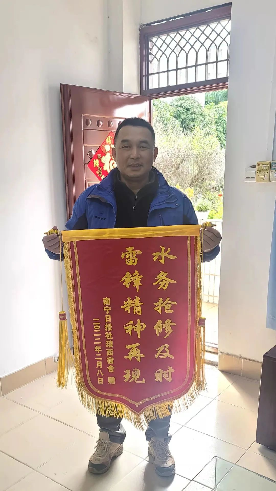 2月22日,一面寫著“水務(wù)搶修及時(shí)、雷鋒精神再現(xiàn)”的錦旗送到管網(wǎng)管理處虎丘工區(qū)修維班副班長(zhǎng)盧繼華的手里。“謝謝你們幫我們修好了水管,大冷天的,你們辛苦了”。贈(zèng)送錦旗的是南寧日?qǐng)?bào)社埌西宿舍居民代表和物業(yè)管理公司代表,他們代表宿舍居民群眾和物業(yè)感謝綠城水務(wù)為一方百姓冷暖、小區(qū)民生服務(wù)所做的大量工作,激動(dòng)感謝之情溢于言表。